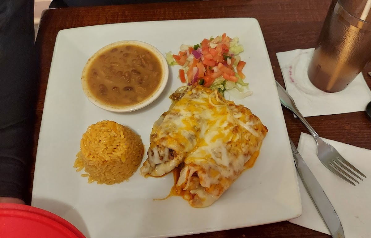 - Carne Con Camarones: A delectable grilled N.Y. Strip served with sautéed jumbo shrimp, rice, beans, and salad for $23.99.